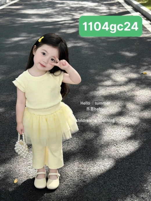 1104gc24 SET ÁO THUN QUẦN LOE KÈM QUÂY BG mặc cưng xỉu các chế ơi, màu vàng nhạt này tôn da tôn dáng lắm nhá. Webb mới mở bán , ảnh thậttt ytam od nha các mom #xxxk/áo #xxxk/quần ✔Size : 80-130 𝑀𝑎̀𝑢 𝑠𝑎̆́𝑐 𝑐𝑜́ 𝑡ℎ𝑒̂̉ 𝑐ℎ𝑒̂𝑛ℎ 𝑙𝑒̣̂𝑐ℎ 𝑐ℎ𝑢́𝑡 𝑑𝑜 𝑎́𝑛ℎ 𝑠𝑎́𝑛𝑔 , 𝑣𝑎̀ 𝑎𝑝𝑝 𝑐ℎ𝑖̉𝑛ℎ 𝑐𝑢̉𝑎 ℎ𝑎̃𝑛𝑔 ! ☘️Giá: áo #114k Quần #154k 🐬Chốt 11/4
