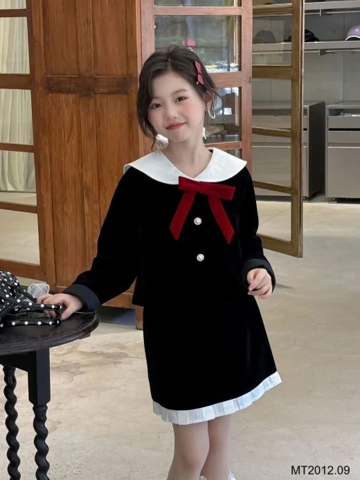 SET ÁO VÁY ĐEN PHỐI NƠ CHO BÉ