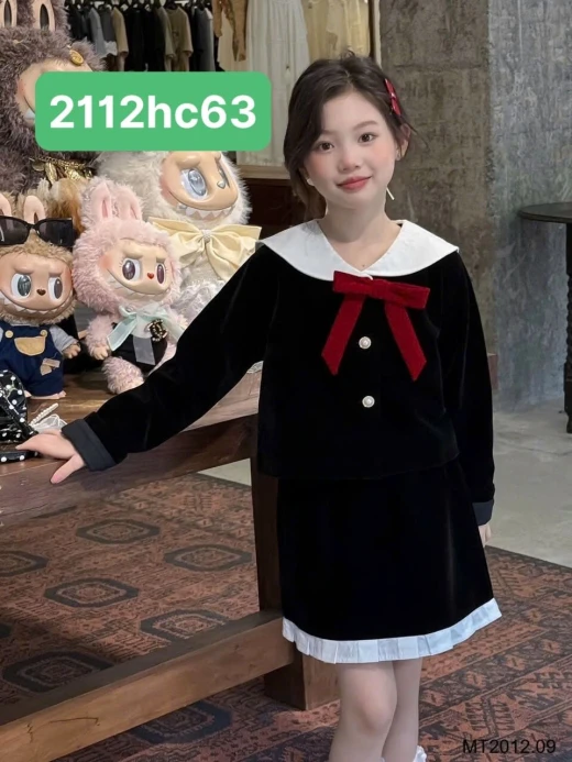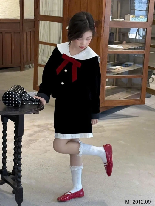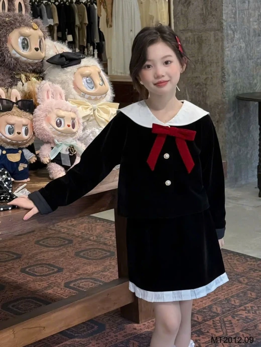 ❌❌SET ÁO VÁY ĐEN PHỐI NƠ CHO BÉ