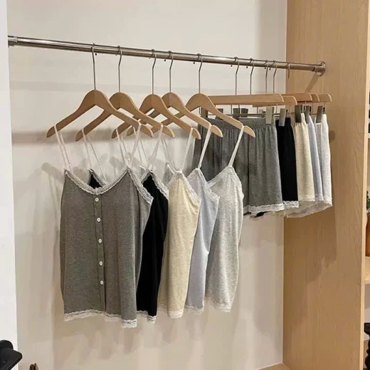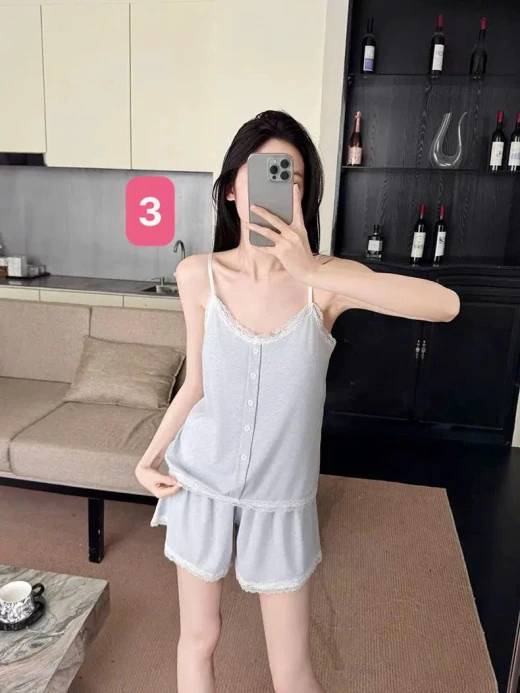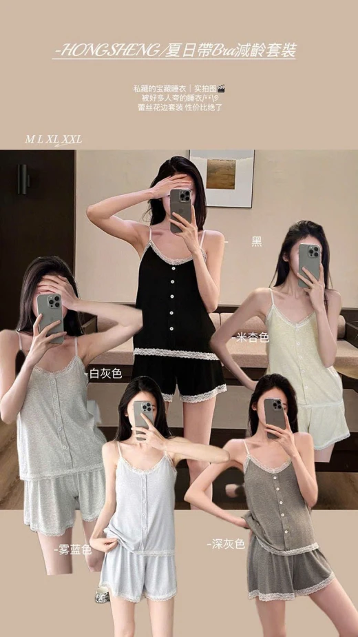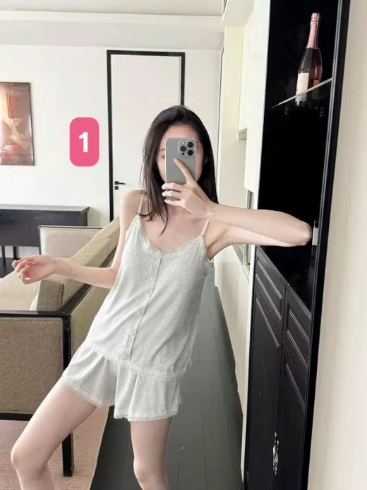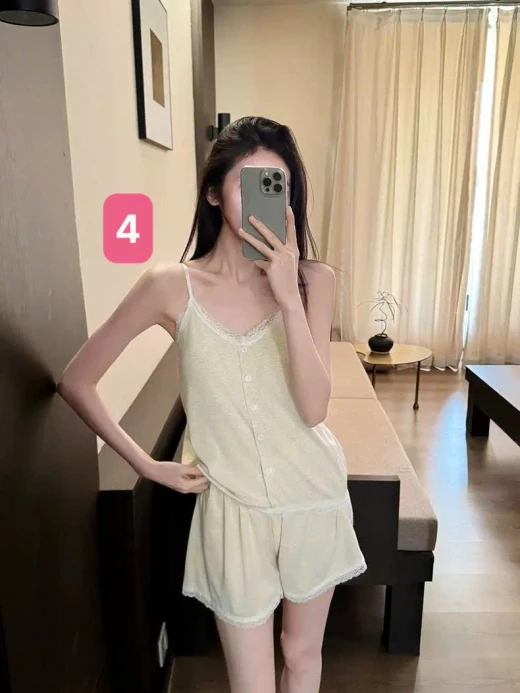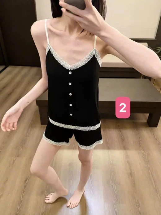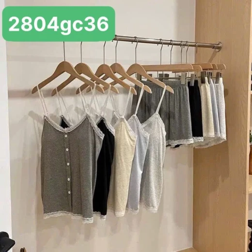 #2804gc36 SET BỘ NGỦ 2 DÂY VIỀN REN CHO NỮ ❣️Mùa hè ở nhà hay đi ngủ cứ quất 2 dây nhẹ mát các c ạ Em gom bộ 2 dây, màu nào cũng xinh ạ. Vải mềm mặc thích lắm 5 màu đánh số sz M-2XL 🌸 giá 176k 🐬 chốt 28/4
