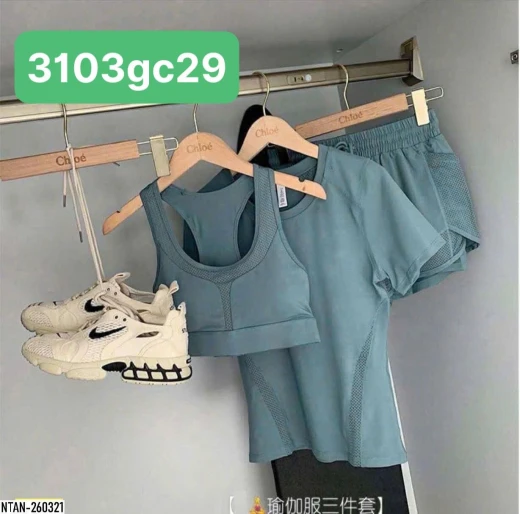 3103gc29 Hẳn 3 món nhé ạ.!!! Mặc là xịn 🍎🍎 SET BỘ TẬP GYM 3 MÓN🍎🍎 Em lại gom tiếp cái sét tập thần thánh này nhé, mặc siêu thích lại xịn xò và rẻ đẹp! 1 set gồm quần + áo bra + áo cộc tay chất liệu siêu thoáng khí nhaaa mặc đi tập, tập ở nhà hay chạy bộ đều đc!! Vì một body khoẻ đẹp nào chị em ❤️ ♨️ #/1 sét 3 món ạ. ✔️3 màu: đen, tím, xanh ✅sz M-2XL M: 47-53kg L: 53-58kg XL: 59-65kg 2XL 65-70kg 🌸 giá 236k 🐬 chốt 31/