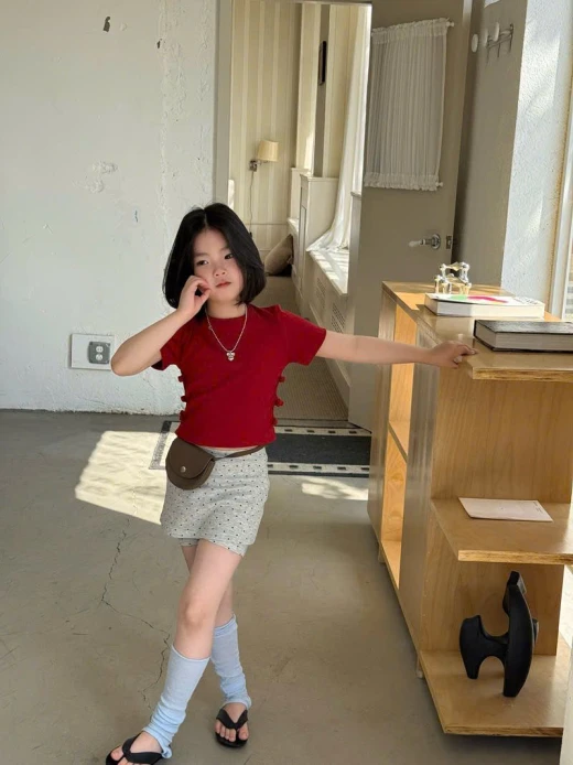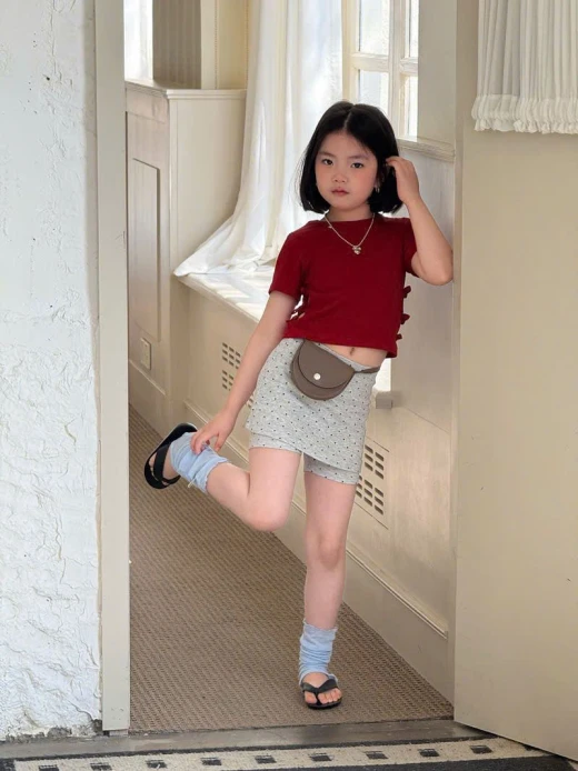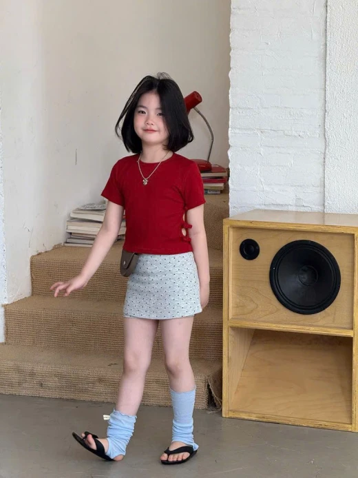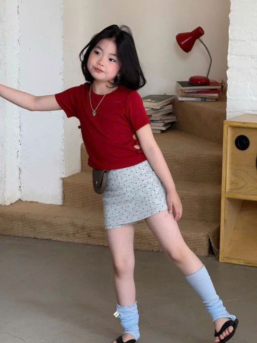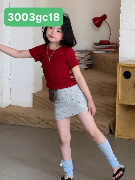 3003gc18 SET CROPTOP ĐỎ KHOÉT EO MIX QUẦN VÁY XÁM ✔Size : 120-160 🌸 giá áo 142k quần váy 154k 🐬 Chốt 30/3