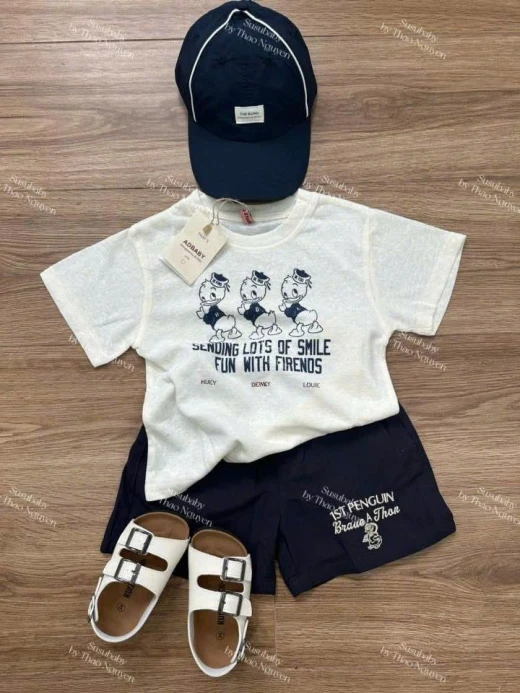 2103gc34 #ADBABY #SUMMER_2026 with set đồ cho bé trai quá xinh nè ✅ Em lên 1 set áo phông, quần style Hàn, giá mềm mà đẹp mê lun ý áo: kem, đỏ, xám quần: 3 màu đánh số ✏️ Size quần áo tham khảo 80 - 8-10kg 90 - 10-13kg 100 - 13-15kg 110 - 15-18kg 120 - 18-21kg 130 - 21-25kg Đôi dép quốc dân e bán chắc cũg 200 đôi rồi ý, khổ con gái đeo lòi ngón rồi e mua tăng size e gom luônnn Màu: trắng, đen, hoa, nâu Bảng size lòng dép Sz 22-39 có kèm bảng sz chi tiết Giá: ✅Áo 100k ✅Quần 120k ✅Sandal 155k chốt 21.3