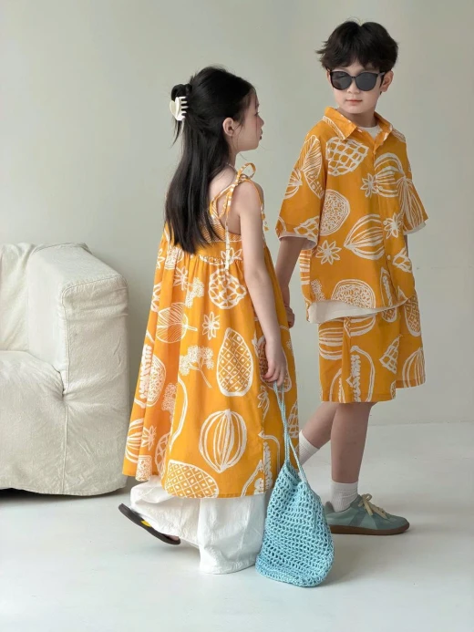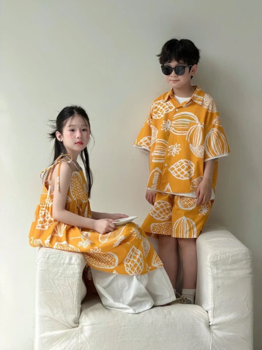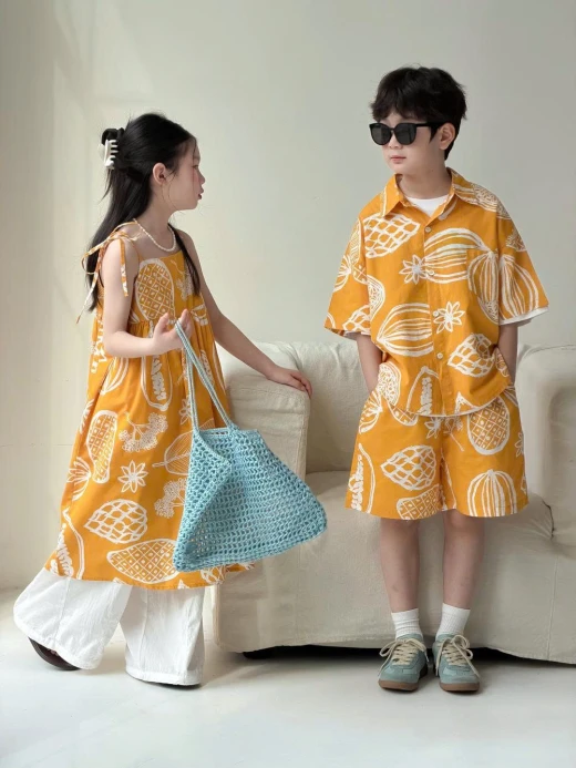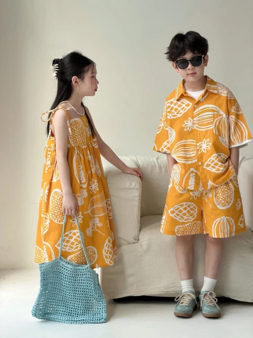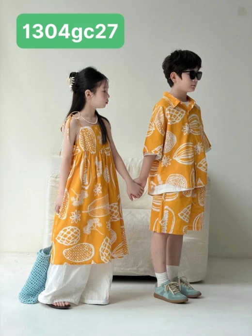 1304gc27 SET ĐỒ ĐÔI 2026X157 HOA QUẢ NHIỆT ĐỚI Váy #xxxk Set #xxxk Thấy màu vàng là đã thấy hè rồi, đi chơi đi chụp bao xinhhh Sz: 100-160 Bảng size tham khảo 100: 13-15kg 110: 16-18kg 120: 19-21kg 130: 22-25kg 140: 26-30kg 150: 30-37kg 160: 37-42kg ☘️Giá: Váy 2s #184k Set bé trai #213k 🐬Chốt 13/4