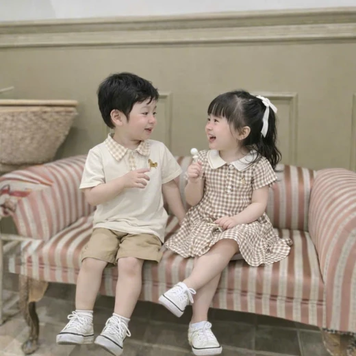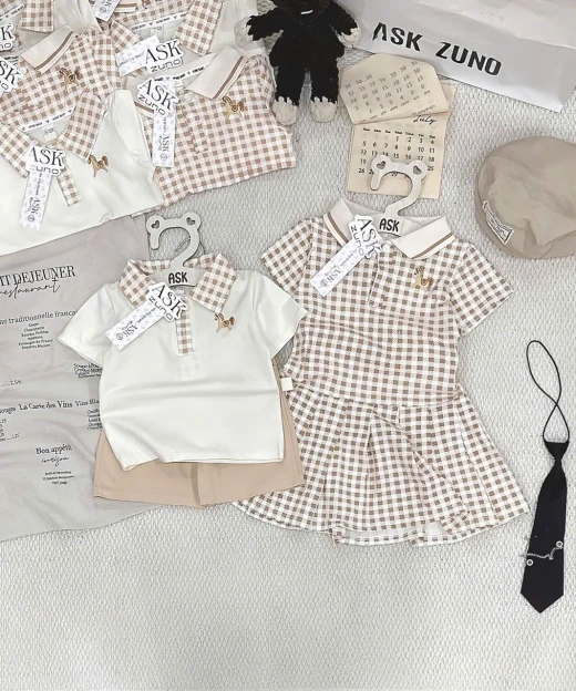 0803gc53v 🤎 SET ĐỒ ĐÔI BÉ TRAI – BÉ GÁI SIÊU XINH 🤎 Tone be – nâu nhẹ nhàng, nhìn là thấy vibe Hàn Quốc dễ thương 💕 ✨ Bé trai: Áo cổ phối caro + quần short kaki giặt mềm ✨ Bé gái: Váy caro xòe nhẹ tiểu thư ✔️ Chất cotton mềm mát, mặc hè cực thoải mái ✔️ Form xinh, dễ vận động ✔️ Anh em mặc đôi – chụp ảnh siêu yêu 📏 Size: 90: 7–9kg 100: 9–11kg 110: 11–14kg 120: 14–17kg 130: 17–20kg 140: 20–23kg 150: 23–25/26kg ☘️Giá: trai = gái = 99k 🐬Chốt 8/3