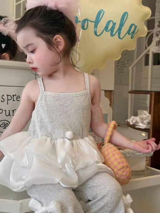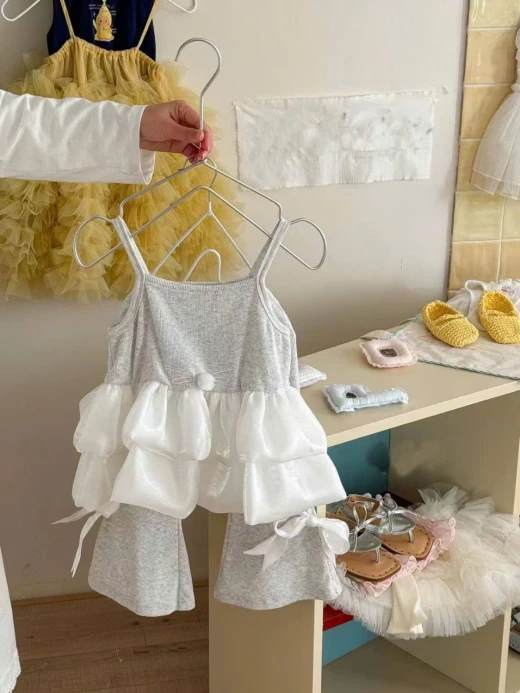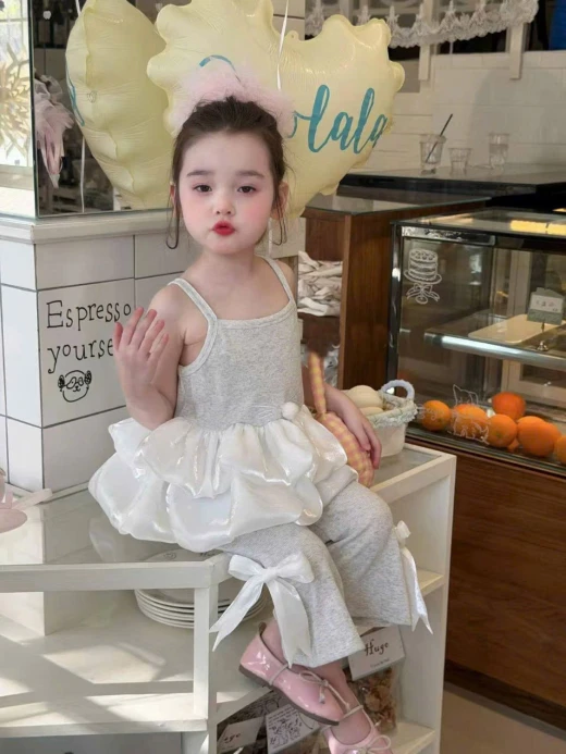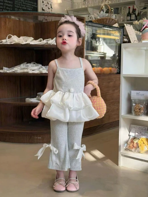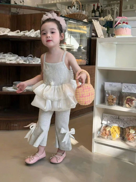 1103gc48 SET NƠ BÈO TIỂU THƯ – XINH XẮN CHO BÉ YÊU Áo hai dây mềm mát phối bèo bồng – xinh xắn quá trời luôn. Quần ống loe đính nơ hai bên – mặc lên là điệu ơi là điệu ✨ Diện đi chơi, cafe hay chụp ảnh là đáng yêu hết nấc luôn đó 💕 🌸Size 80-130 💰 Giá: Áo 156k - quần 141k ⏰Chốt 11/3