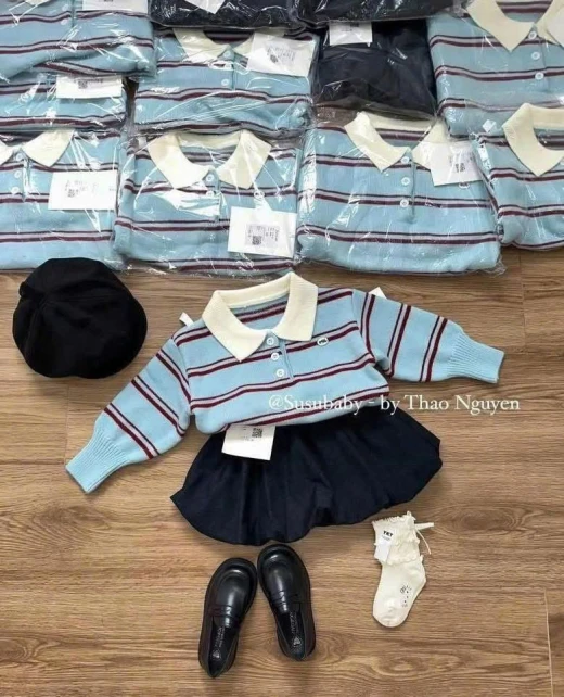 3012hc50 Trời ơi xuất sắc Quá xinh với tone màu xanh pastel này các mẹ ơi, chot cả set cho e nha🥰 Áo #245k Cvay #205k Full set #399k ạ ✔️ 𝐒𝐢𝐳𝐞 𝐭𝐡𝐚𝐦 𝐤𝐡𝐚̉𝐨: 80: 9-11kg 90: 12-14kg 100: 14-16kg 110: 16-18kg 120: 19-21kg 130: 22-24kg 140: 25-28kg 150: 29-35kg Giá: áo 206k, váy 167k Chốt 3012