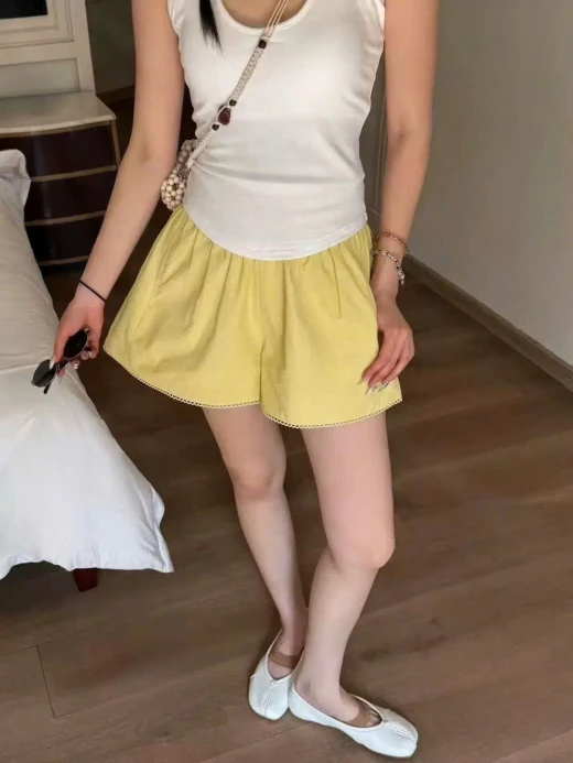 2304gc20 SHORT THÔ CẠP CHUN BẢN TO ANNA cạp to dáng bồng như chân váy, mix đồ siêu xịn ✔5 màu : trắng , đen , vàng , kaki , xanh ✔Size : M-L 🌸 giá 178k 🐬 chốt 23/4