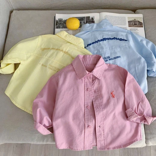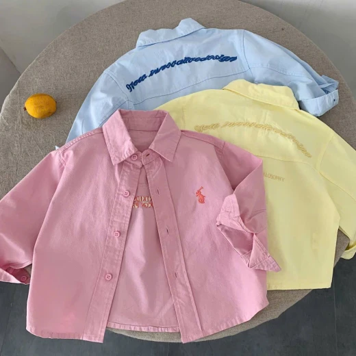 0501gc45 SƠ MI DÀI TAY THÊU ✔3 màu : xanh , vàng , hồng • Size : 90-150 🌸 giá 149k 🐬 chốt 05/01