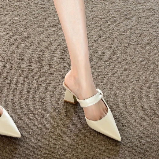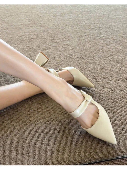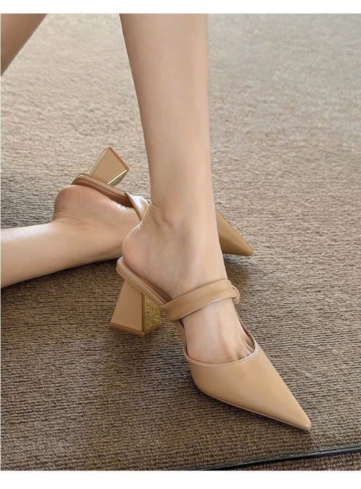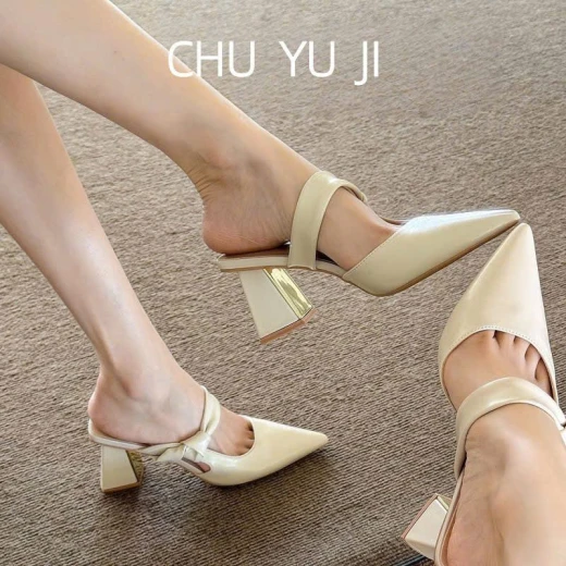 2604gc04 SỤC CAO GÓT MŨI NHỌN QUAI LỆCH ✔2 màu : kem , nude ✔Size : 35-40 🌸 giá 211k 🐬 chốt 26/4