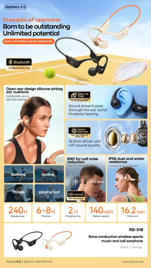 0303gc27 TAI NGHE REMAX RB-S18 THỂ THAO ‼ ‼ ‼ Tai Nghe Thể Thao Xịn Sò REMAX RB-S18 – Công nghệ truyền âm qua xương cực đỉnh, không cần nhét tai, nghe nhạc vẫn rõ nét mà tai luôn thoáng khí, an toàn khi vận động. 🎯 Lý tưởng cho: Người chơi thể thao, đi bộ, đạp xe, tập gym – vừa nghe nhạc, vừa an toàn vì vẫn nghe được âm thanh xung quanh. Chất liệu cao cấp: Khung dẻo bền, đệm silicon siêu nhẹ, đeo lâu không đau tai. Bluetooth 5.4: Kết nối nhanh, ổn định, tiết kiệm pin. Pin 140mAh: Nghe nhạc & gọi điện thoải mái, thời gian chờ siêu dài. Chuẩn IP56: Chống bụi, chống nước, thoải mái tập gym, chạy bộ, chơi thể thao. Âm thanh HIFI: Driver 16.2mm màng loa Polymer, bass trầm mạnh mẽ, giọng nói rõ ràng. Công nghệ ENC chống ồn: Đàm thoại cực rõ kể cả khi ngoài đường. 2 màu : Đen, Cam 🌸 giá 319k 🐬 chốt 3/3
