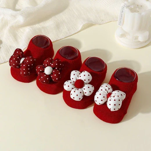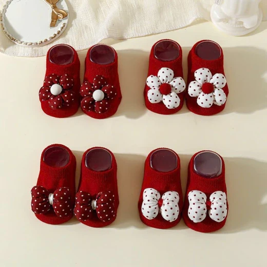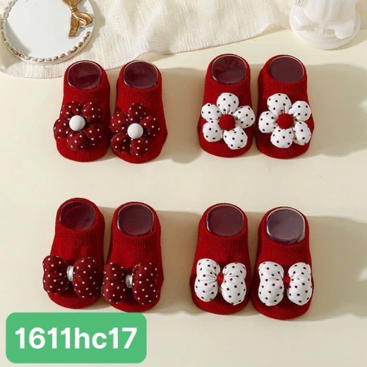 1611hc17 TẤT LƯỜI ĐỎ GẮN HOA ✔4 mẫu đánh số ✔Size : S-M S(0-1y) M(1-3y) 🌸 giá 42k 🐬 chốt 16/11