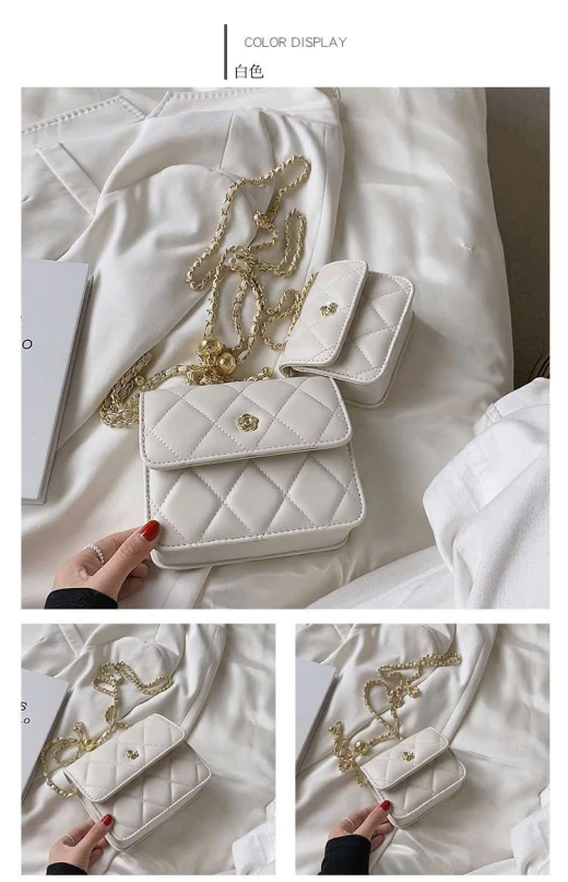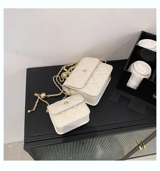 2802gc25 TÚI ĐEO CHÉO CHẦN Ô TRÁM Túi chần ô trám sang xịn, phối outfit đi chơi/đi tiệc cực hợp. Xích vàng nổi bật, khóa tròn điểm nhấn nhìn rất “chanh sả”. 2 màu: đen, trắng ✅KT chi tiết trên ảnh 🌸 giá bé: 137k to: 152k 🐬 chốt 28/2