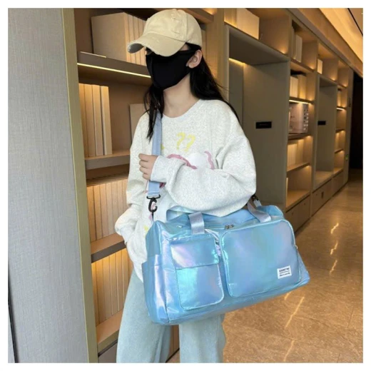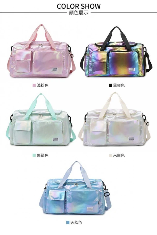 2811hc69 TÚI DU LỊCH PHONG CÁCH HÀN QUỐC HOLOGRAM Túi du lịch nữ phong cách Hàn Quốc với chất liệu hologram bắt sáng, hiện đại và nổi bật. 5 màu đánh số ✅Kt em để ở ảnh trong bài 🌸 giá 133k 🐬 chốt 28/11