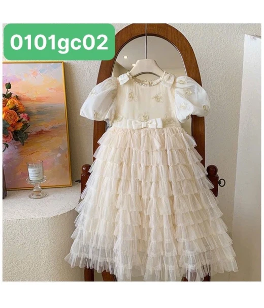 0101gc02-VÁY CÔNG CHÚA VOAN TAY BỒNG KEM