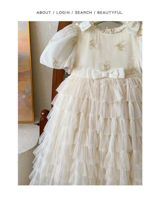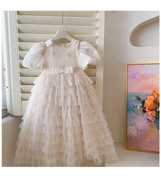 VÁY CÔNG CHÚA VOAN TAY BỒNG KEM