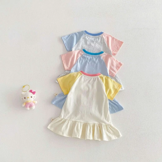 1404gc31 VÁY COTTON ĐUÔI CÁ PHỐI MÀU TAY ✔3 màu : ghi , xanh , kem ✔Size : 73-120 🌸 giá ghi: 128k xanh, kem: 124k 🐬 chốt 14/4