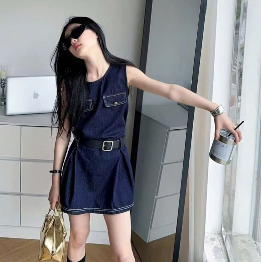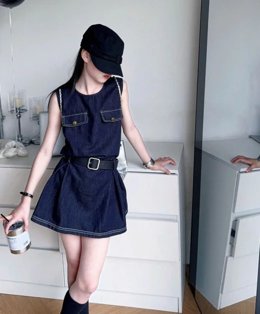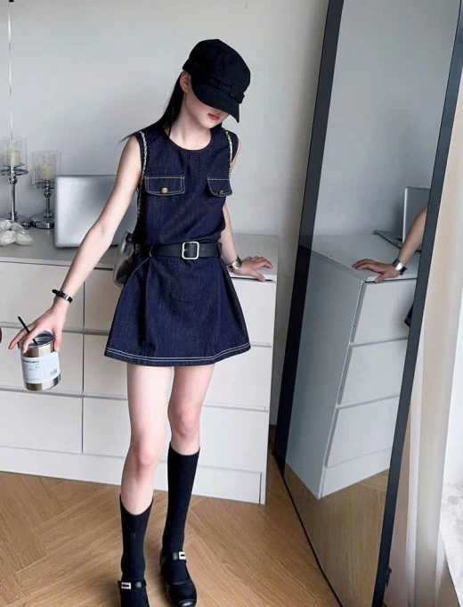 2603gc02 VÁY DENIM SÁT NÁCH SZ ĐẠI thắt thêm thắt lưng vào là xịn sò hết nước chấm nha ✔Size : 120-170 🌸 giá 234k 🐬 chốt 26/3