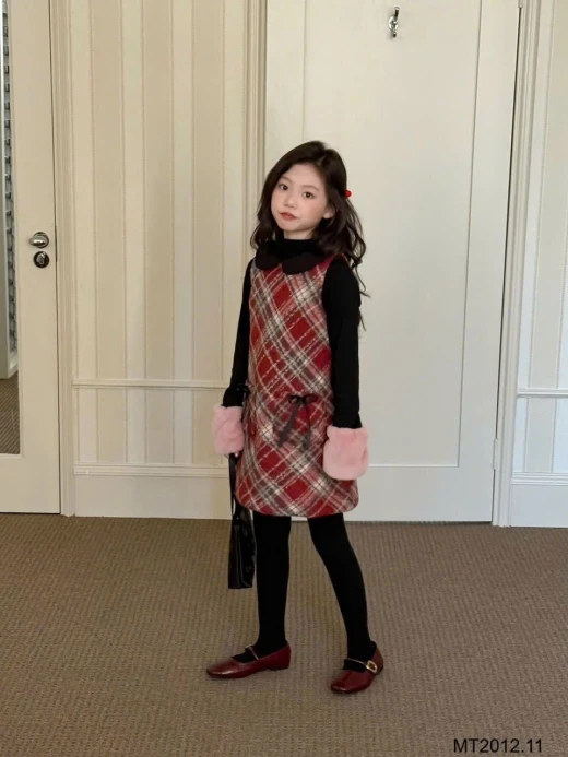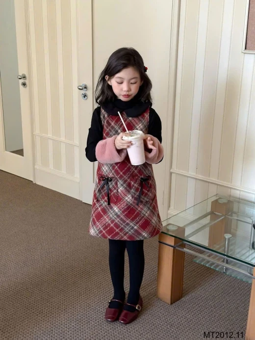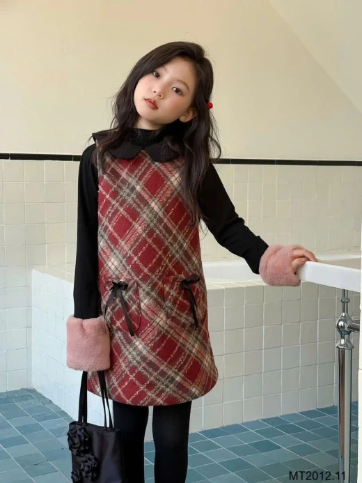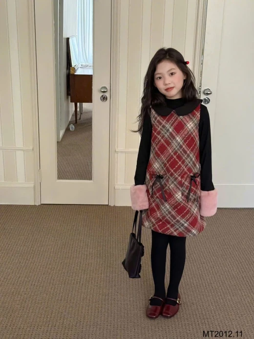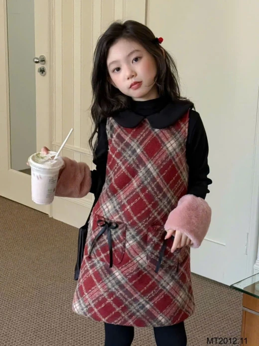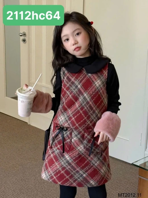 2112hc64-Váy kẻ cổ sen sát nách cho bé gái