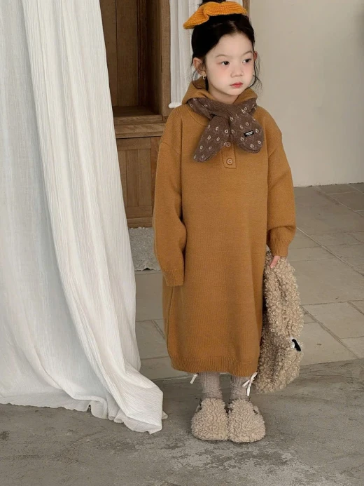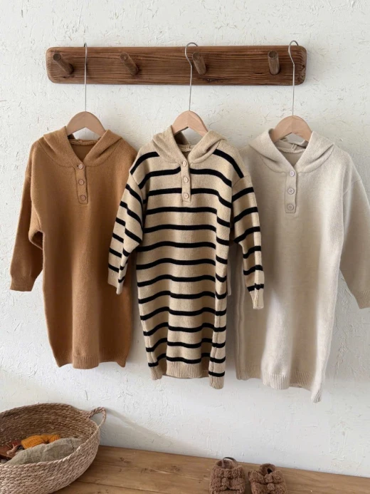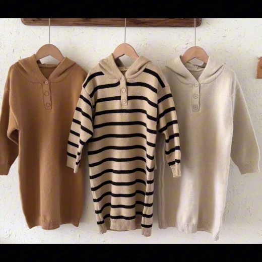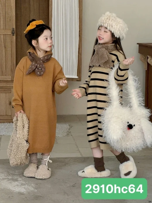2910hc64 VÁY LEN DÁNG SUÔNG CÓ MŨ #xxxk.c hàng qccc nha các mom 3 màu: Be, Cam, kẻ Sz: 90-150 Giá: 218k Chốt 2910