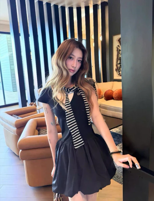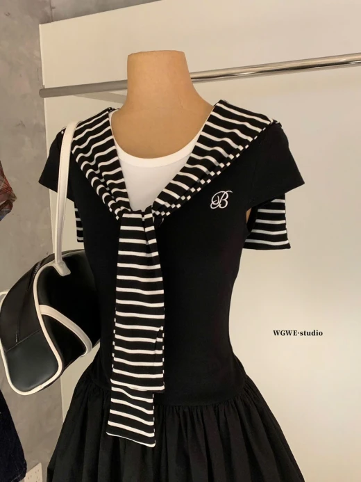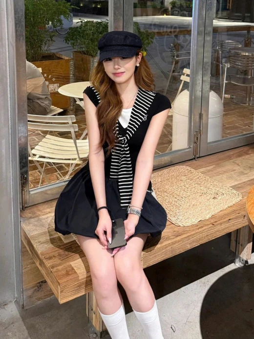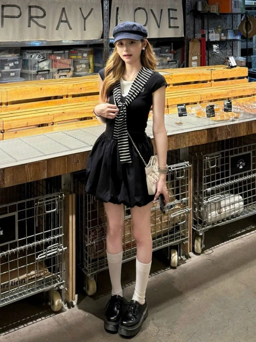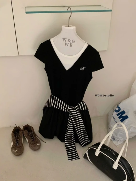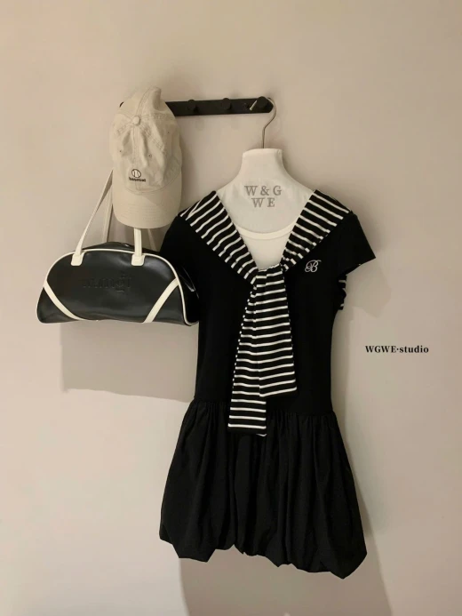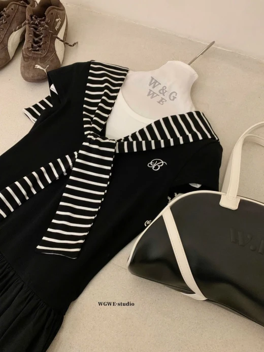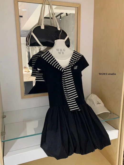 2903gc40 VÁY LIỀN XÒE DÁNG NGẮN WGWE 8881 Thiết kế cực xinh cực năng động! Phối màu đen trắng trendy sz SM 🌸 giá 275k 🐬 chốt 29/3