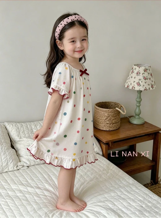 1904gc30 VÁY NGỦ TIỂU THƯ LINANXI EO ôi, thề xinh dã man các mẹ ạ dinh ngay về bộ sưu tập cho bé đi ạ mát, xinh, giá hời ✔6 mẫu đánh số ✔Size : 90-130 🌸 giá 117k 🐬 chốt 19/4