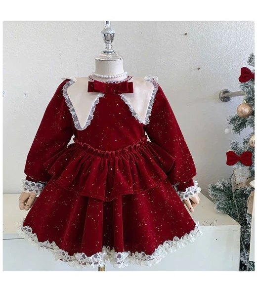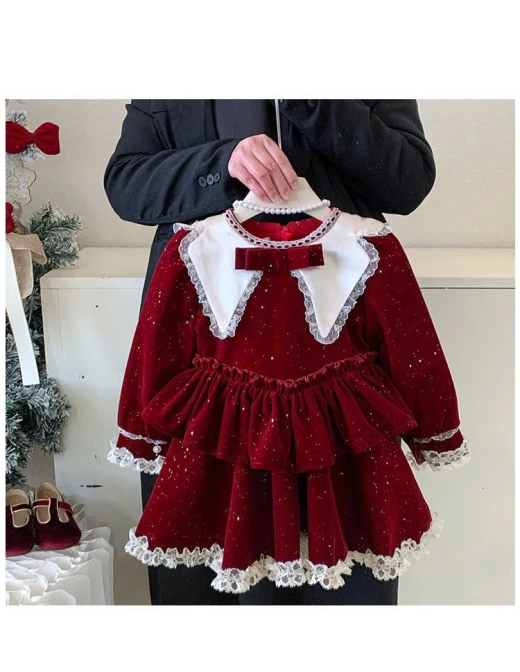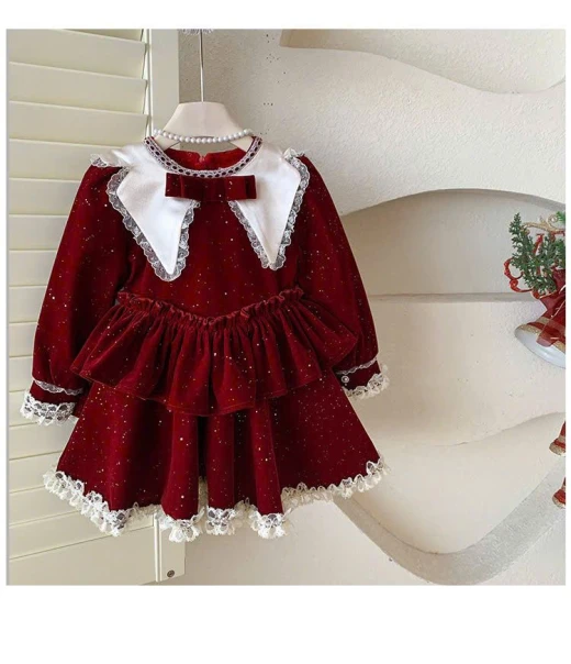 1112hc58 VÁY NHUNG TIỂU THƯ LÓT NHUNG BLUETOWN ✔2 màu : đỏ - đen ✔Size : 90-140 🌸 giá 281k 🐬 chốt 11/12