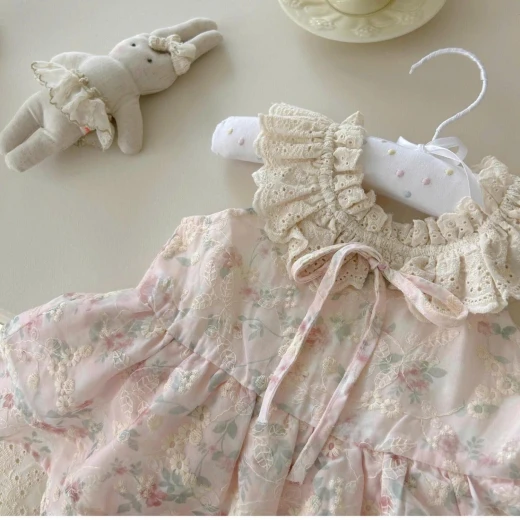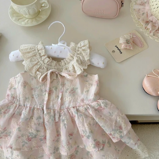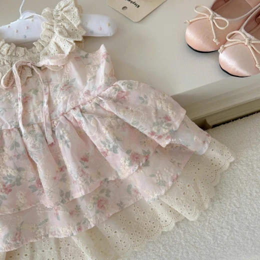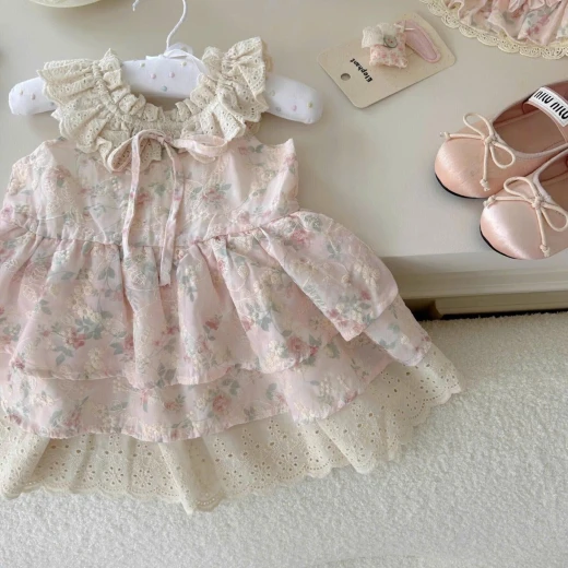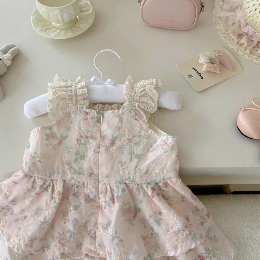 #2804gc26 VÁY REN HOA CHO BÉ Ren mềm, hoa tinh tế – thiết kế xoè nhẹ nhàng Bé mặc đi tiệc, chụp ảnh hay đi chơi đều nổi bật! sz 80-130 🌸 giá 166k 🐬 chốt 28/4