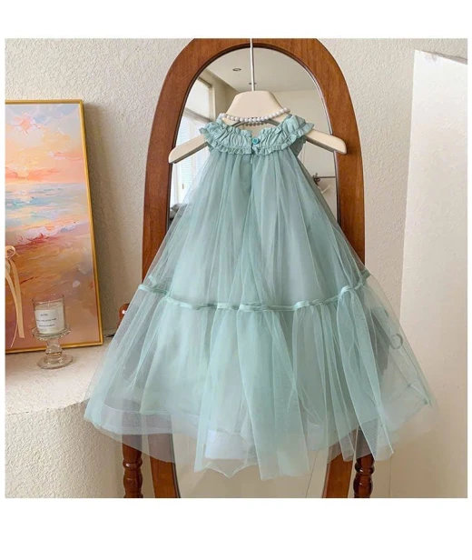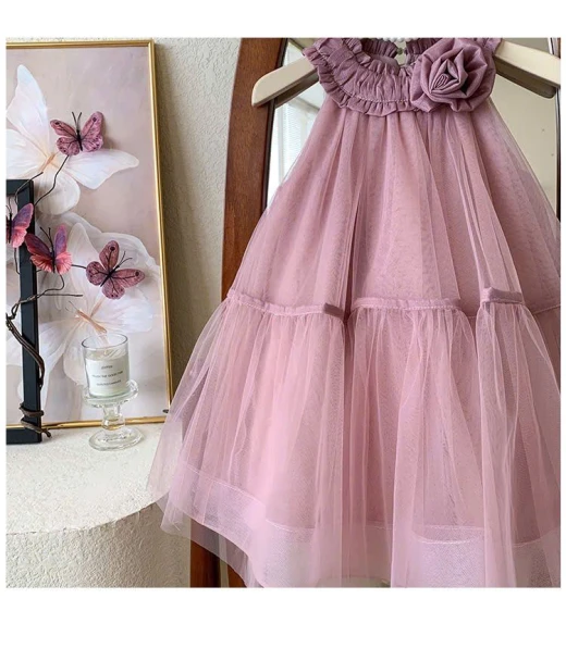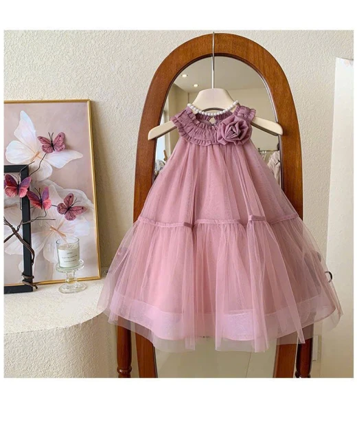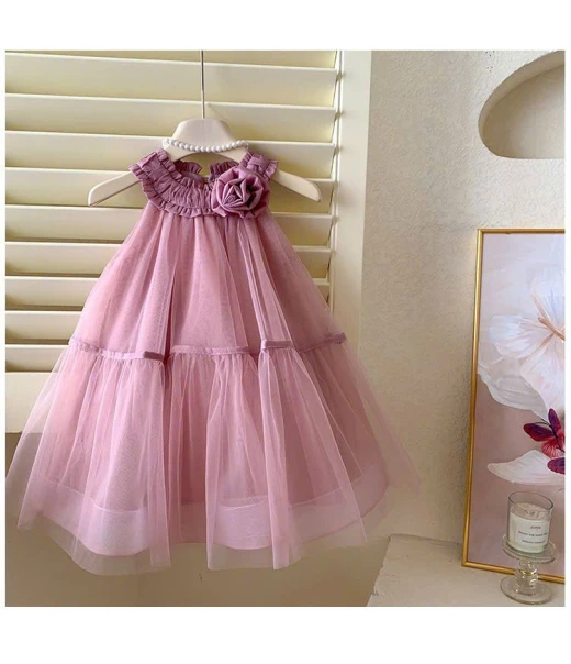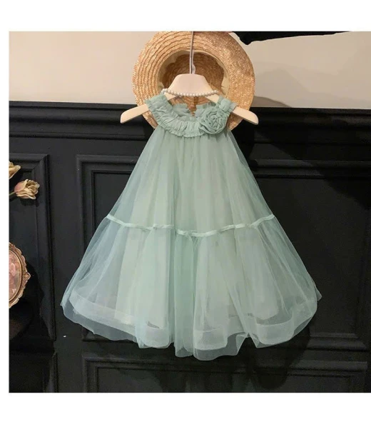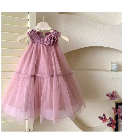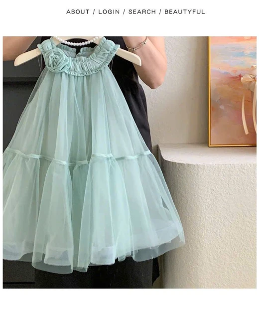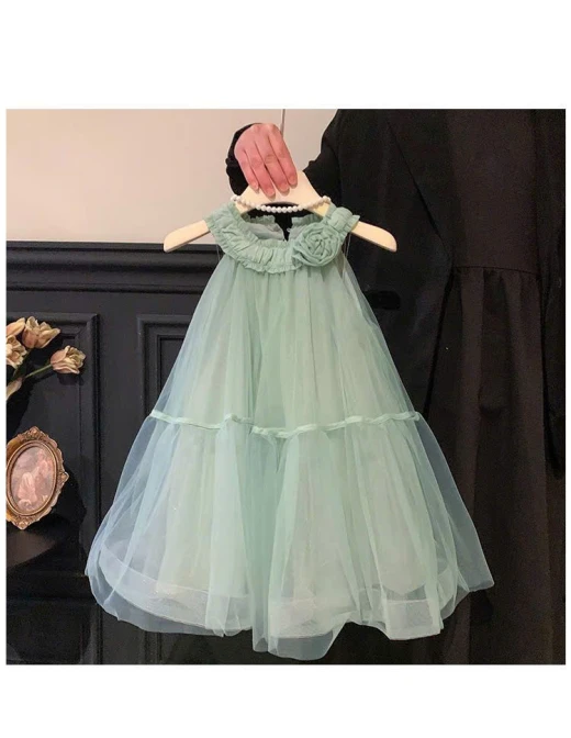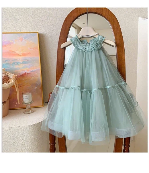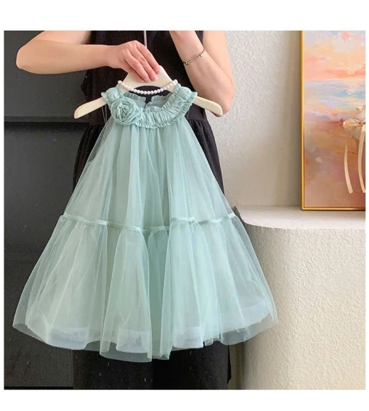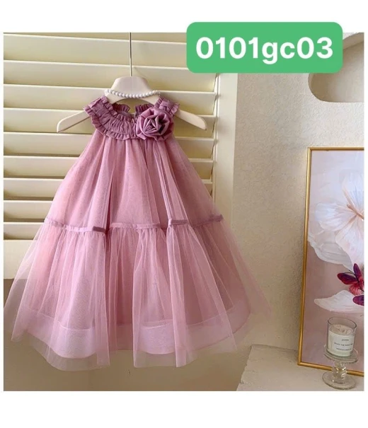 0101gc03 VÁY VOAN CỔ YẾM GẮN HOA BLUETOWN ✔2 màu : hồng , xanh ✔Size : 90-150 🌸 giá 210k 🐬 chốt 0101