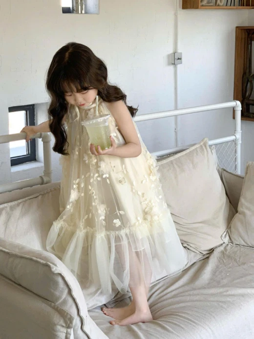 2212hc68 VÁY VOAN HOA 3D CỔ YẾM Xinh như này ai mà chịu nổi nhỉ ✔Size : 90-140 🌸 giá 232k 🐬 chốt 9/12