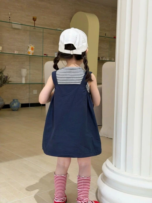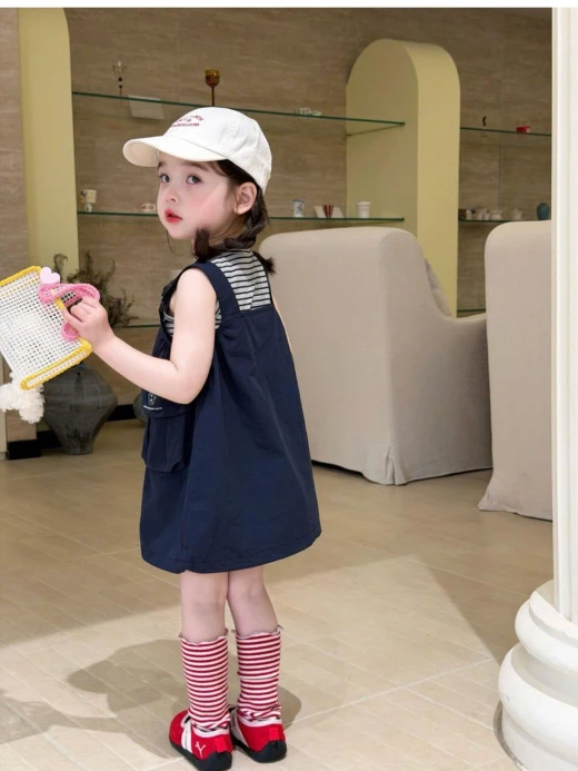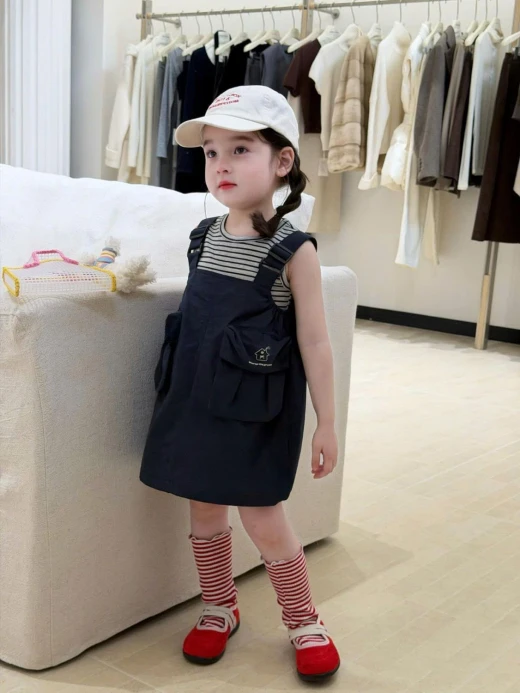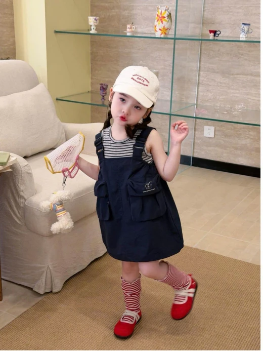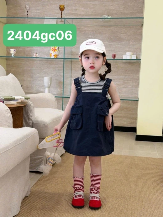 2404gc06 VÁY YẾM KOREA MIX ÁO KẺ ✔Size : 90-140 🌸 giá áo giá 113k váy yếm giá 190k 🐬 chốt 24/5