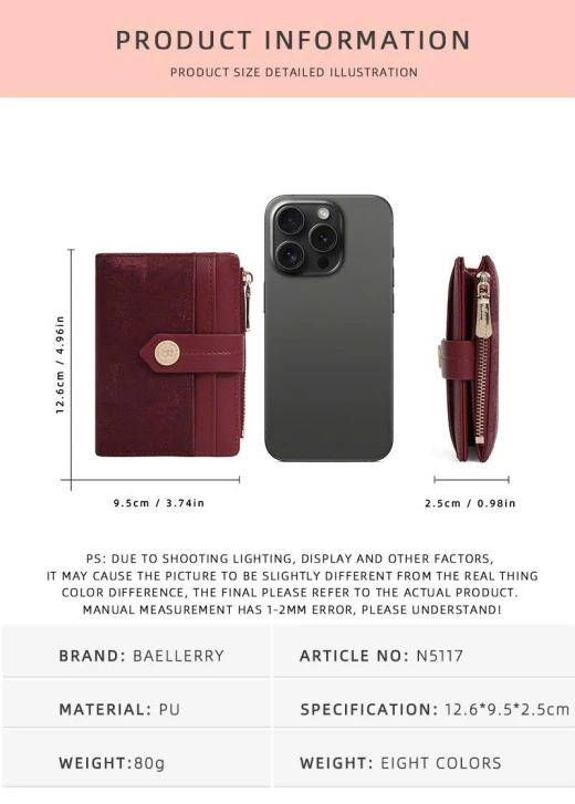 1503gc43 VÍ NỮ BAELERRY MINI Ví nữ Baelerry thiết kế nhỏ gọn, phong cách thanh lịch và hiện đại. Chất liệu mềm mại, đường may chắc chắn, khóa bấm kim loại tinh tế. ✔8 màu đánh số 🌸 giá 83k 🐬 chốt 15/3